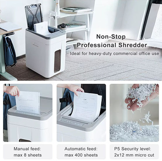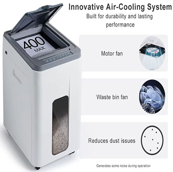 Shredding Capacity: auto 400 sheets / manual 8 sheets.